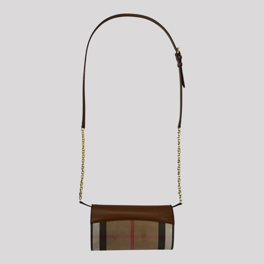 Burberry Derby Calfskin House Check Henley Wallet On Chain