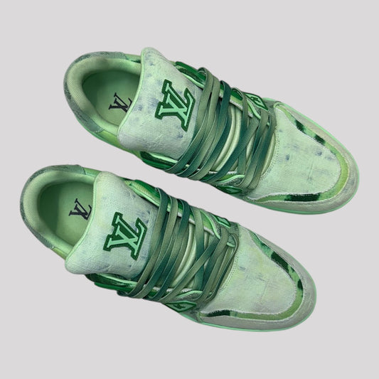 Louis Vuitton Denim Green LV Trainer Sneakers