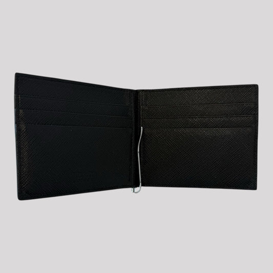Prada Saffiano Money Clip Bifold Wallet Card Case