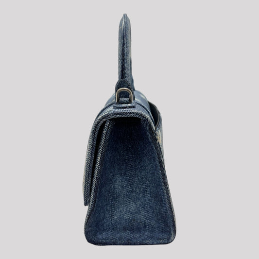 Balenciaga Nappa Denim Printed Small Hourglass Top Handle Bag