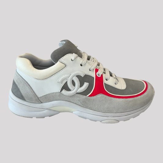 Chanel CC Logo White Suede Pink Trainer Sneakers