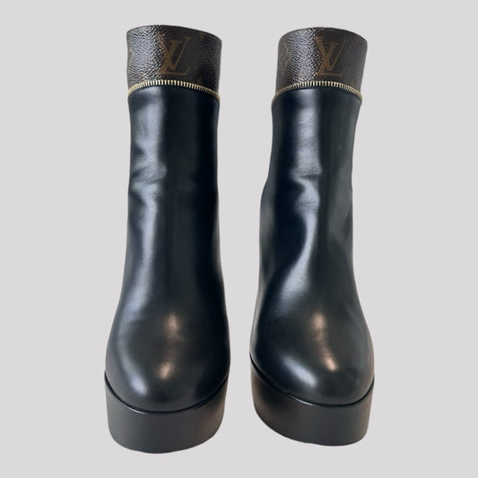 Louis Vuitton Calfskin Monogram Afterglow Platform Ankle Boots
