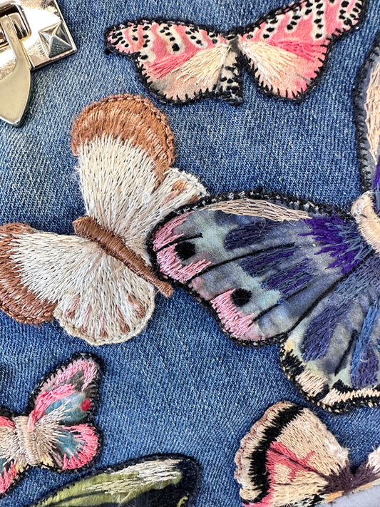 Valentino Garavani Denim Butterfly Embroidered Medium Rockstud Tote Light Denim Multicolor Bag