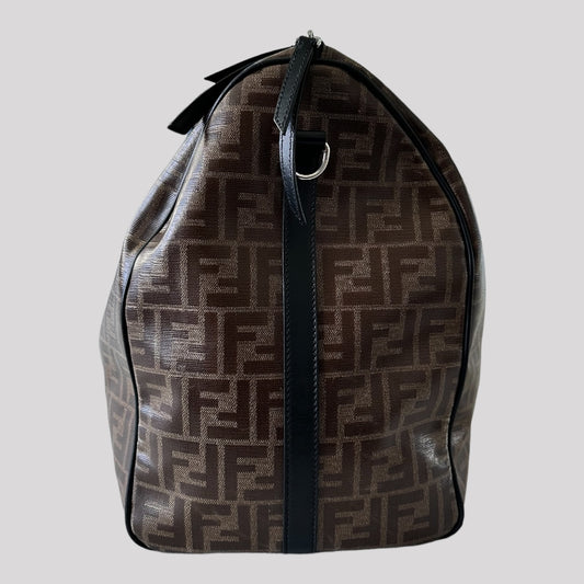Fendi Double F Convertible Boston Bag Zucca Coated Canvas Large